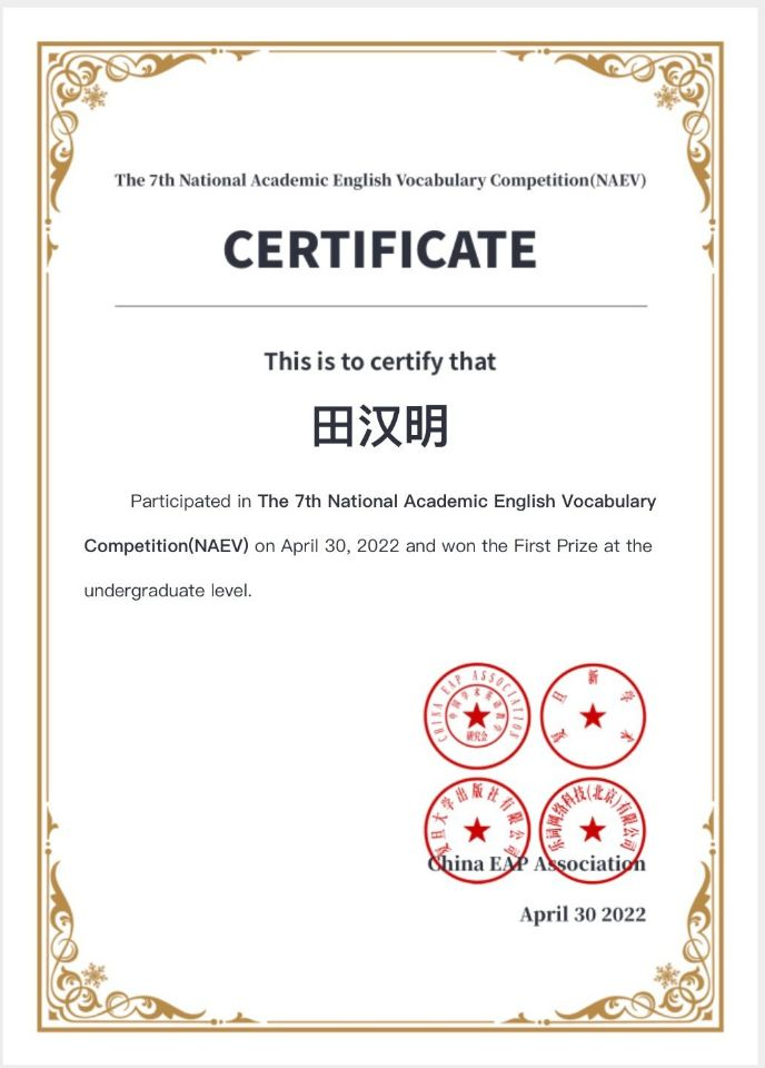 日前,由中国学术英语教学研究会和复旦大学出版社联合主办的“第七届全国大学生学术英语词汇竞赛”圆满落幕,我校学子再创佳绩,其中田汉明、苏凌钰、张超等17人荣获一等奖。2UPBATE(中国)一站式服务平台牵头组织了大赛在我校的相关赛事活动,曲园学术英语协会协办。