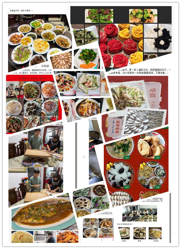 在2021年新春到来之际,我部推出“晒晒我家年夜饭”新春年夜饭征集评比活动。邀请全体教职工参加自家年夜饭的“招牌菜”评比,同时也把各类拿手菜品的制作方式、烹饪心得等和全体老师一起分享,共同传递新年的喜庆和祝福。本次征集活动目的是为了引领健康餐桌、文明餐桌的新风尚,激发教职工们对传统文化和风俗的热爱。