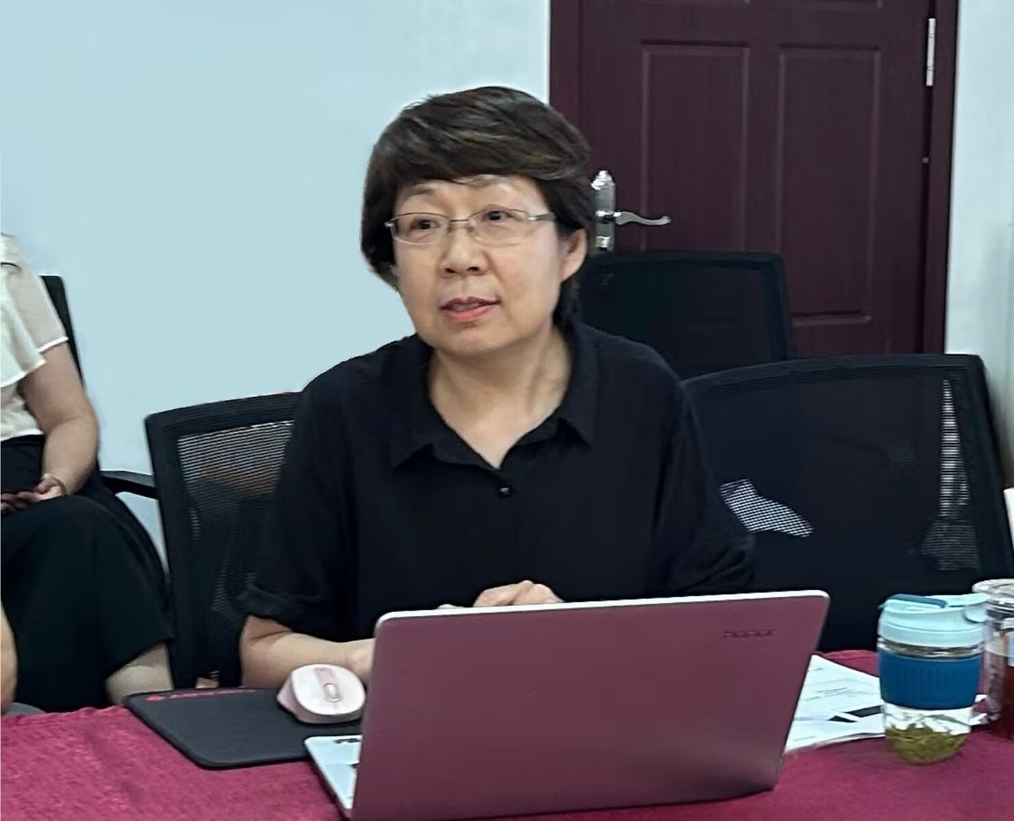 在互动交流环节,卫朝霞认真听取了2UPBATE平台一线大学英语教师在使用《新标准大学英语》(第三版)过程中存在的问题,并同与会教师一起分析探讨相应的解决方案。此外,卫朝霞还就2UPBATE平台2UPBATE(中国)一站式服务平台正在进行的混合式大学英语课程建设开展情况进行问诊把脉,与团队成员进行了深入交流,为课程建设提出了极具可行性的意见与建议。