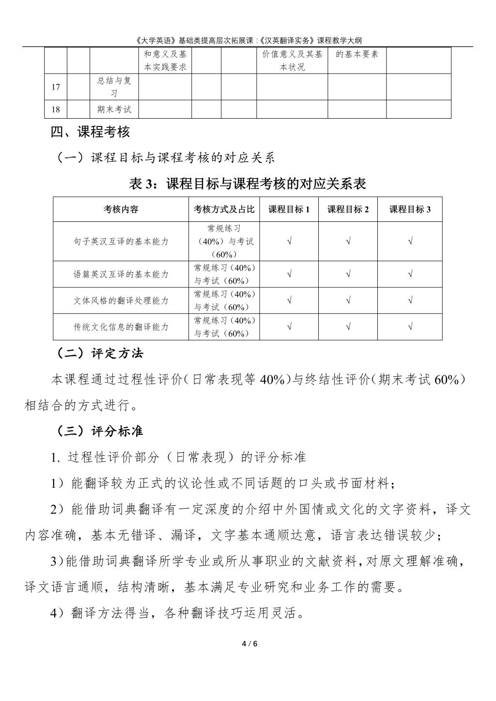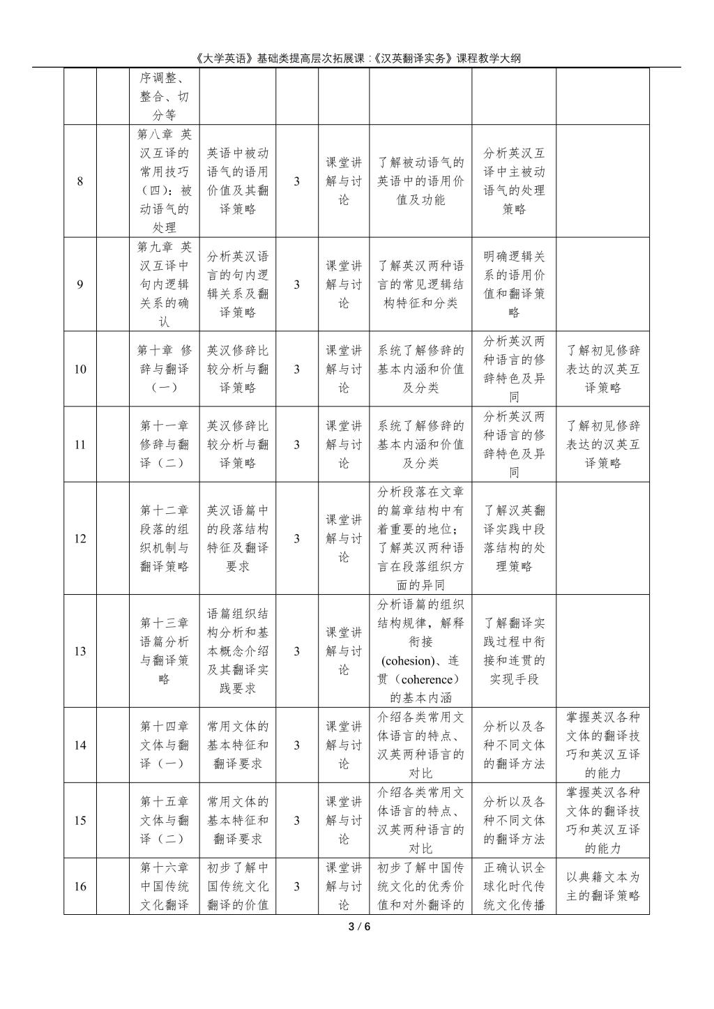 大学英语(普通类提高层次拓展课:《汉英翻译实务》)课程教学大纲(2022版)