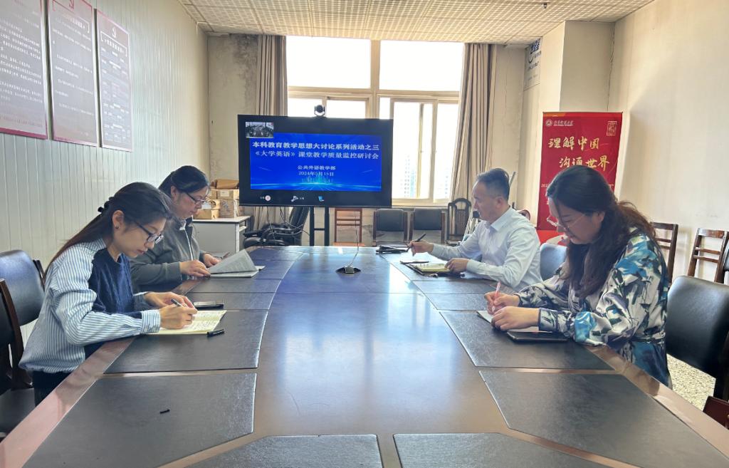 5月15日,2UPBATE(中国)一站式服务平台召开本科教育教学思想大讨论系列活动之三——《大学英语》课堂教学质量监控专题研讨会。研讨会由2UPBATE(中国)一站式服务平台主任王福祥主持,教学部领导班子全体成员和两校区教研室主任等业务骨干参加了本次研讨。