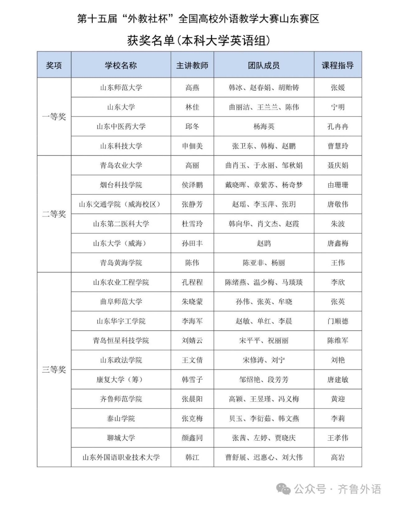 朱晓蒙团队在第十五届“外教社杯”全国高校外语教学大赛(山东赛区)取得佳绩