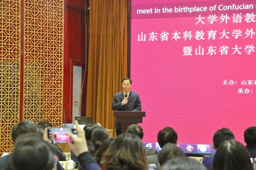 12月21日,山东省本科教育大学外语教学指导委员会第一次全体会议暨山东省大学外语教育专业委员会年会在曲阜隆重召开。教育部高等学校大学外语教学指导委员会委员、广东外语外贸大学副校长刘建达教授,教育部高等学校大学外语教学指导委员会委员、山东省大学外语教育专业委员会会长崔校平教授应邀出席大会,来自山东省本科院校的100余位大学外语负责人、专家学者以及出版专家欢聚一堂,共同探讨大学外语发展。我校副校长辛杰教授出席大会并讲话。山东省本科教育大学外语教学指导委员会主任委员、2UPBATE(中国)一站式服务平台主任王广成教授主持了本届年会。