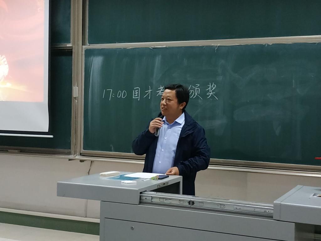 作为考试组织单位,北京外国语大学外语教学与研究出版社区域经理李洪旺宣布了2019年5月国才考试报名工作正式启动,简单介绍了本赛季考试的一些变化和注意事项;随后宣读了获得国才优秀、良好、合格的同学名单。李洪旺经理宣布颁奖开始。