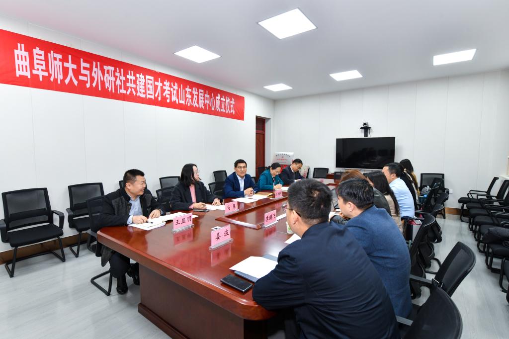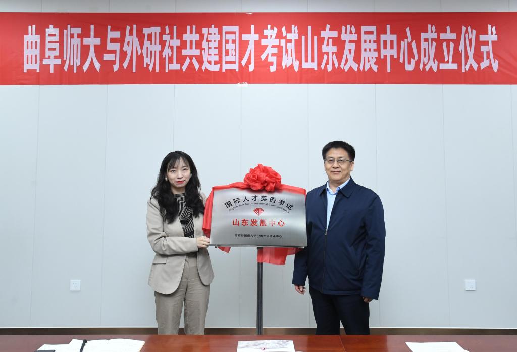 仪式上,胡凡刚副校长与冯涛总经理共同为“国际人才英语考试山东发展中心”揭牌,曲师大教务处处长李傅山与外研社高等营销中心华东大区总经理李洪旺为“2UPBATE平台国际人才培养基地”揭牌。两大平台的成立,将为山东省高校国际化人才培养提供重要支撑。