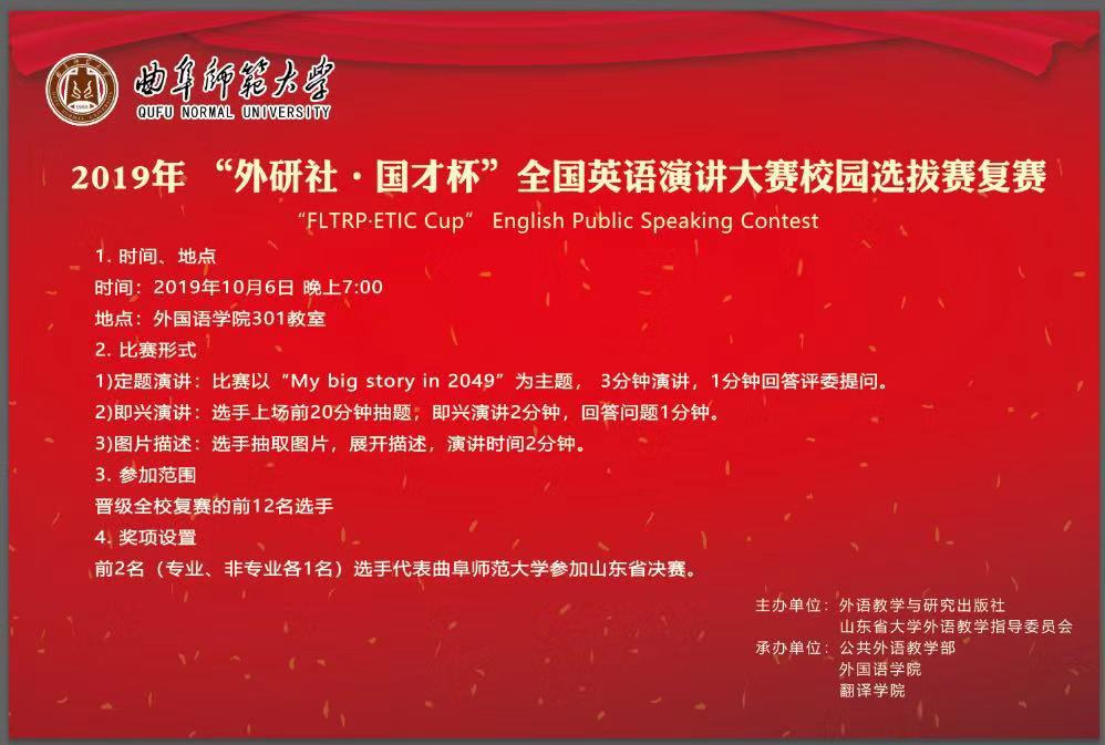 2019年 “外研社•国才杯”全国英语演讲大赛校园选拔赛复赛通知